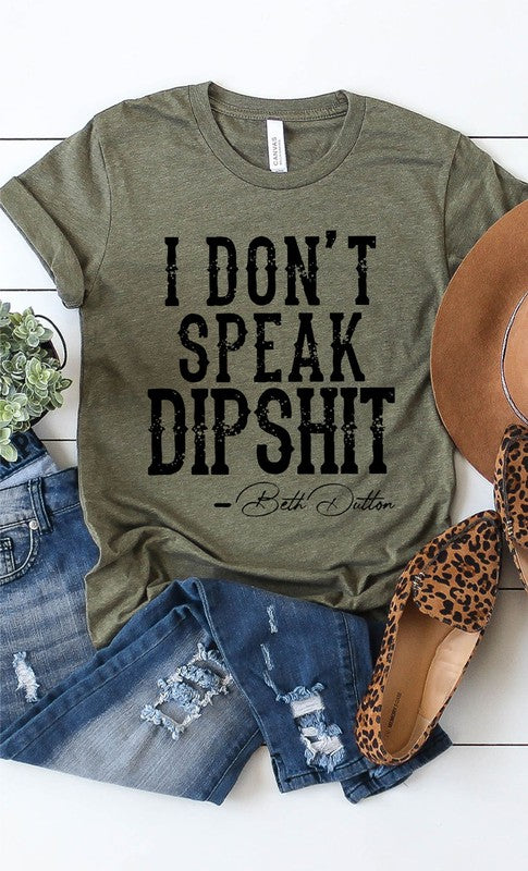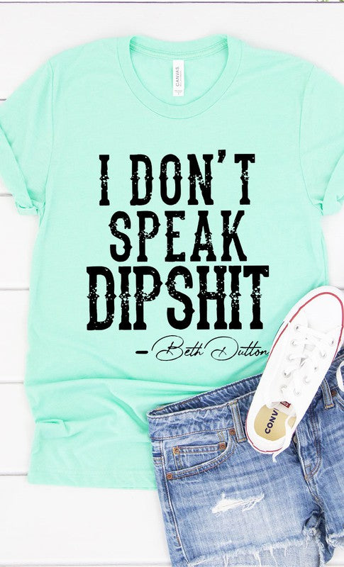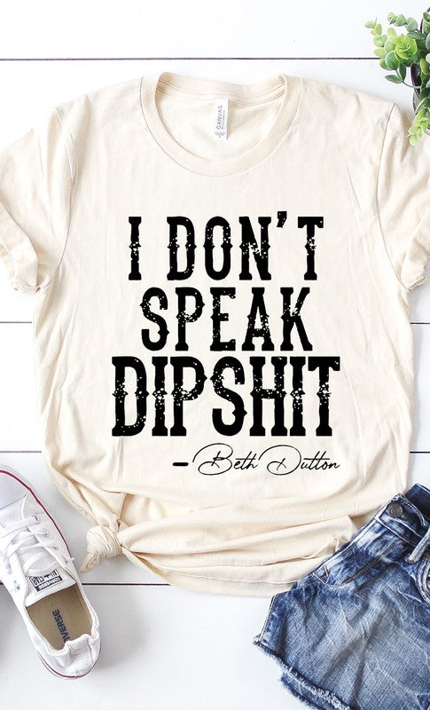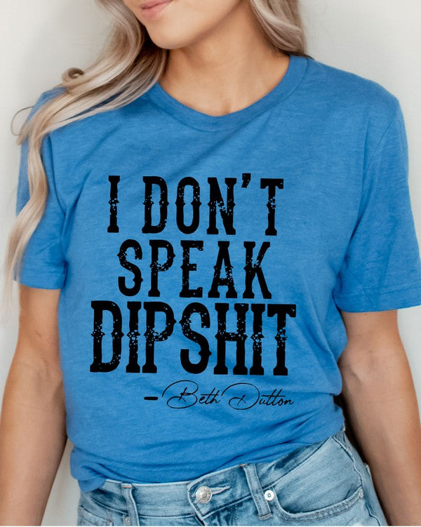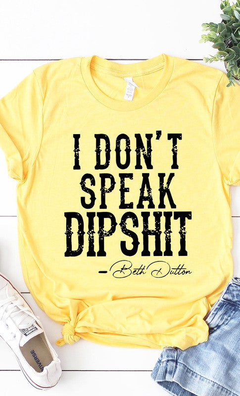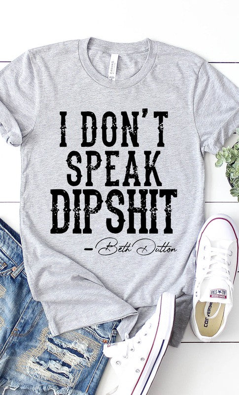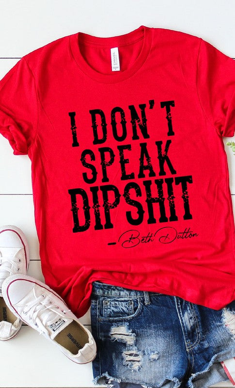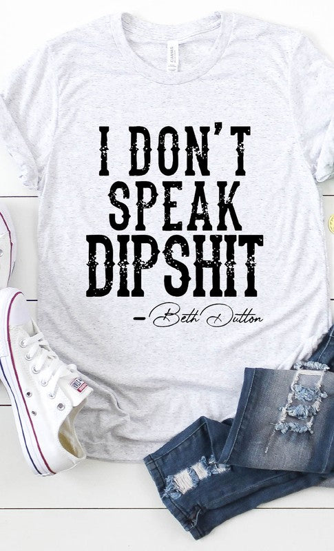 Beth Dutton Dipshit Graphic Tee. Most t-shirt colors are 52/48 cotton/polyester, Athletic Heather & Black Heather are 90/10 cotton/polyester. White, cream, canvas red, lilac, pink, and mint are 100% cotton. Ash is 99/1.