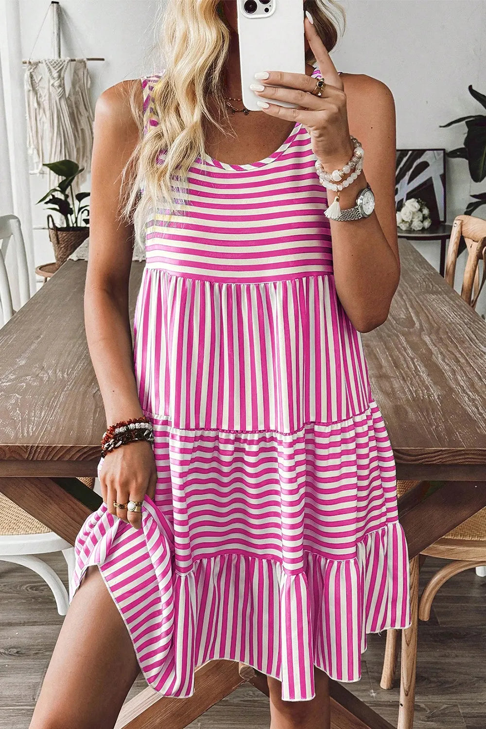 Stripe U Neck Sleeveless Loose Fit Mini Dress